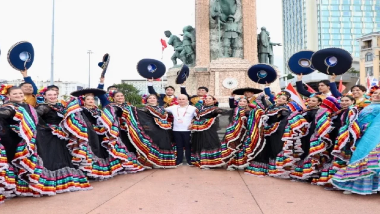 İSTANBUL (İGFA) - 75 ülke temsilcisinin ülke bayraklarıyla katıldıkları çelenk takdim töreninde Meksika, Bulgaristan, Güney Kore ve Kazakistan’dan katılan dans ekipleri renkli ulusal folklorik kostümleri ve geleneksel müzikleri eşliğinde Taksim Meydanı’nda görsel bir şölen yaşattı.
