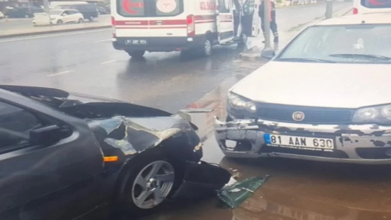 DÜZCE (İGFA) - Bahçeşehir bağlantı yolu üzeri Metek Toki ışıklı kavşağında E.D. yönetimindeki otomobil D.B. yönetimindeki başka bir otomobil ile çarpıştı.