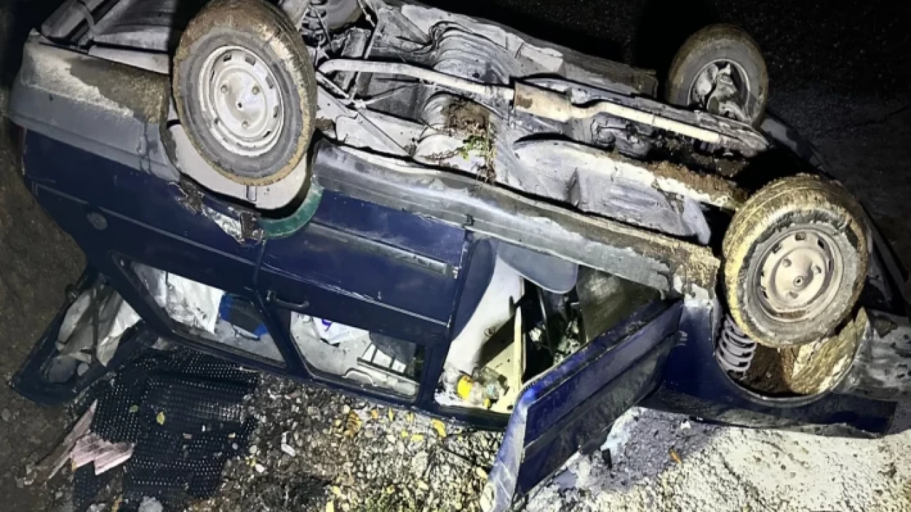 Sefer DEMİR / DÜZCE (İGFA) - Alınan bilgiye göre M.U. idaresindeki 54 YU 141 plakalı otomobil, Düzce'nin Aydınpınar köyünde, kontrolden çıkarak şantiye alanındaki çukura devrildi.