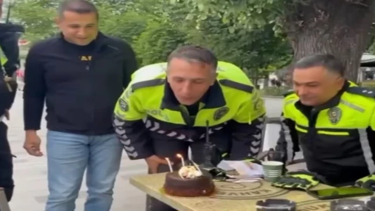 Yapılan paylaşımda, Trafik Tescil ve Denetleme Şube Müdürlüğü’nde görev yapan Hakan Kutupoğlu’na ekip arkadaşları tarafından unutulmayacak doğum günü süprizi düzenledi.
