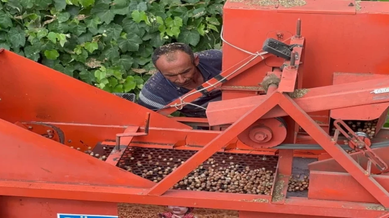 Düzce'nin Yığılca ilçesinde fındık hasadına devam eden bahçe sahipleri, kuruttukları ürünü patoz makinelerinde kabuğundan ayrıştırmaya başladı.