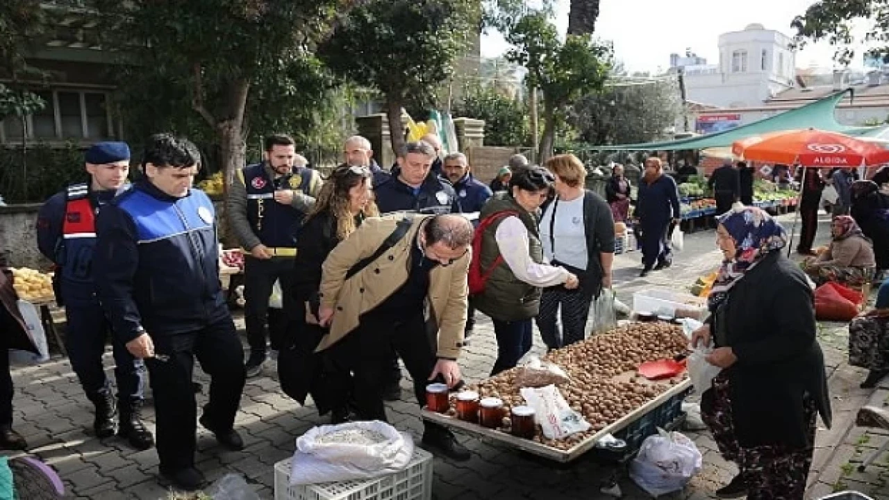 Edremit zabıtadan pazar yerinde gıda denetimi