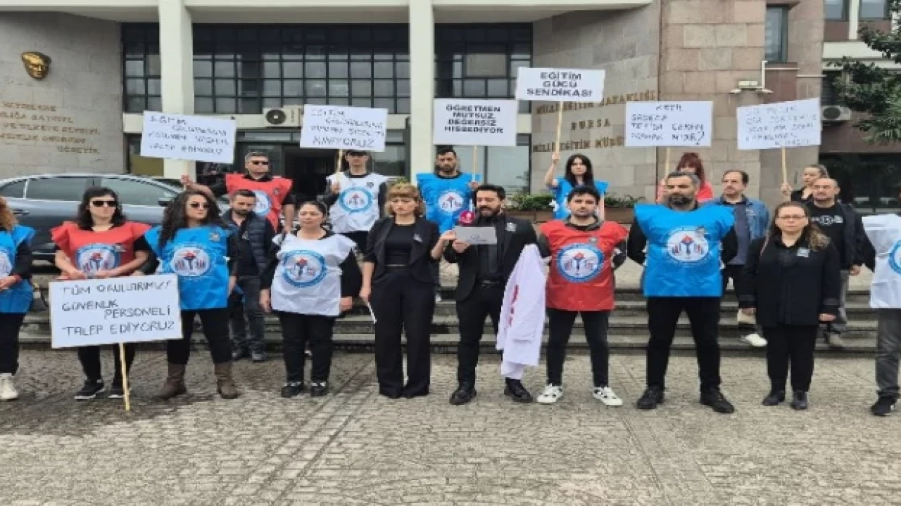 Eğitim çalışanlarına yapılan şiddete 'dur' demek için Eğitim Gücü-Sen Bursa İl Temsilciliği tarafından düzenlenen basın açıklamasında, hiçbirinin bu tür bir tehlike ile yüz yüze kalmayı hak etmediklerini söyledi.