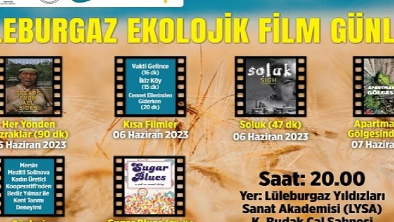 Lüleburgaz Belediyesi, dünyada her geçen gün artan çevre sorunlarına dikkat çekmek ve çevreye karşı farkındalık oluşturmak amacıyla Ekolojik Film Günleri düzenleyecek. TEMA Lüleburgaz İlçe Sorumluluğu, Lüleburgaz Sinema Topluluğu, BIFED ve Film Kooperatifi iş birliğiyle düzenlenecek film gösterimleri 5, 6, 7 ve 9 Haziran tarihlerinde saat 20.00’dea LYSA Budak Çal Sahnesi’nde izleyiciyle buluşacak.