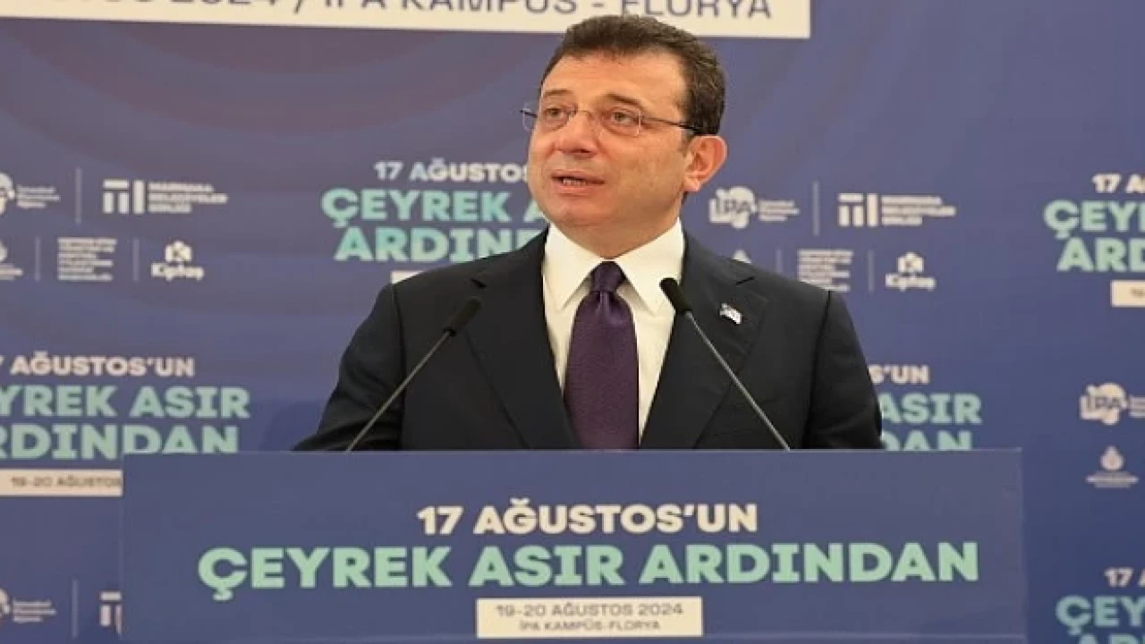 Konuşmasına, “25 yıl önceyi bugün konuşmak ve içi yine kaygılarla ve de üzüntülerle ve hatta görevimizi tam yapamamanın da biraz başımızı öne eğen duruşuyla sürdürmenin hüznünü yaşıyorum” sözleriyle başlayan İmamoğlu, özetle şunları söyledi: