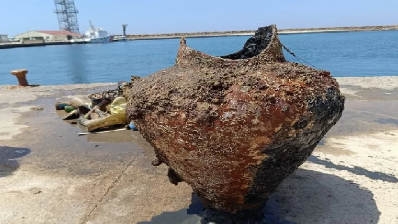 Temizlik sırasında Dalgıç Ahmet Uz tarafından bulunan amfora, Sahil Güvenlik Botu aracılığı ile dışarıya alındı. Yapılan çalışamlarda lastik, pet, şişe ve atık malzemeler bulundu.