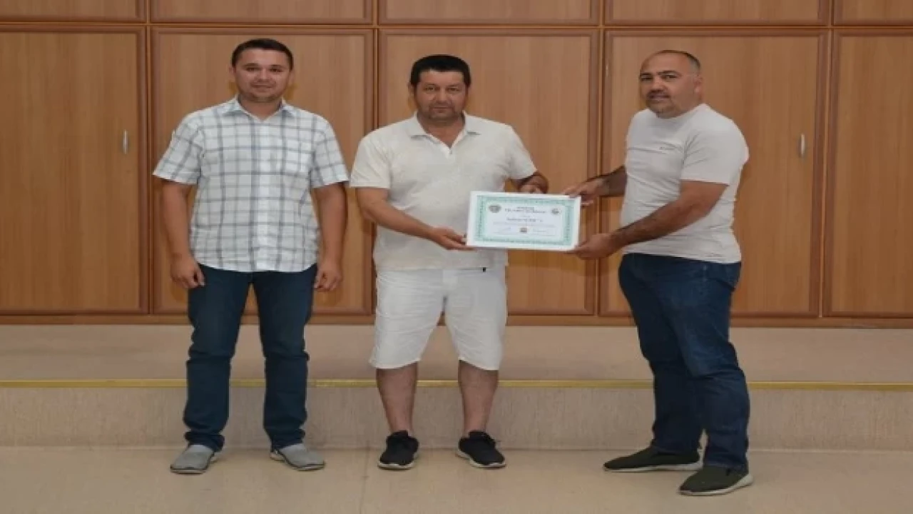 ETB Yönetim Kurulu Üyesi Oğuz Kurban, üretici Serkan Süer’i kutlayarak günün anısına plaket ile 100 litre mazot hediye etti.