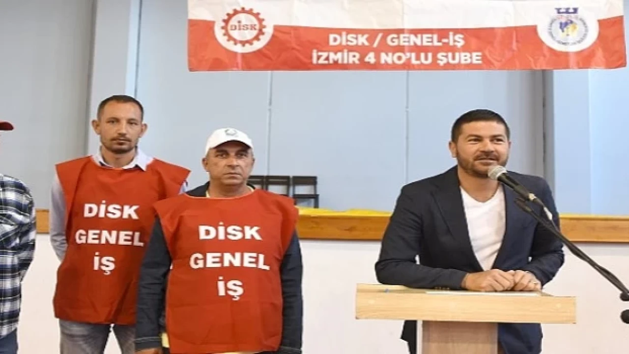 Foça Belediye Başkanı Fatih Gürbüz’ün konuşmasının ardından, Disk/Genel-İş Sendikasının basın açıklaması okundu.
