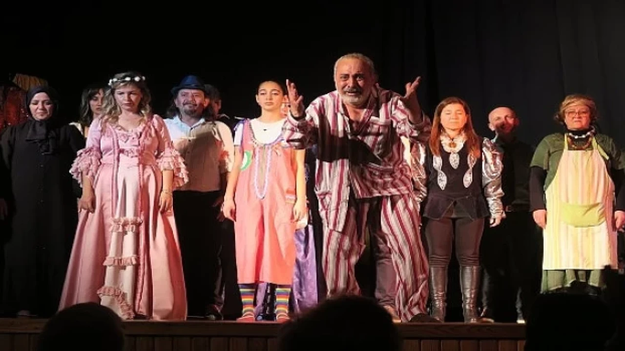 Tiyatro Eğitmeni Yönetmen Erdal Dinçer, oyun öncesinde iki geç öğrencisi ile sahneye gelerek salonu dolduran tiyatro severlere iyi seyirler diledi.