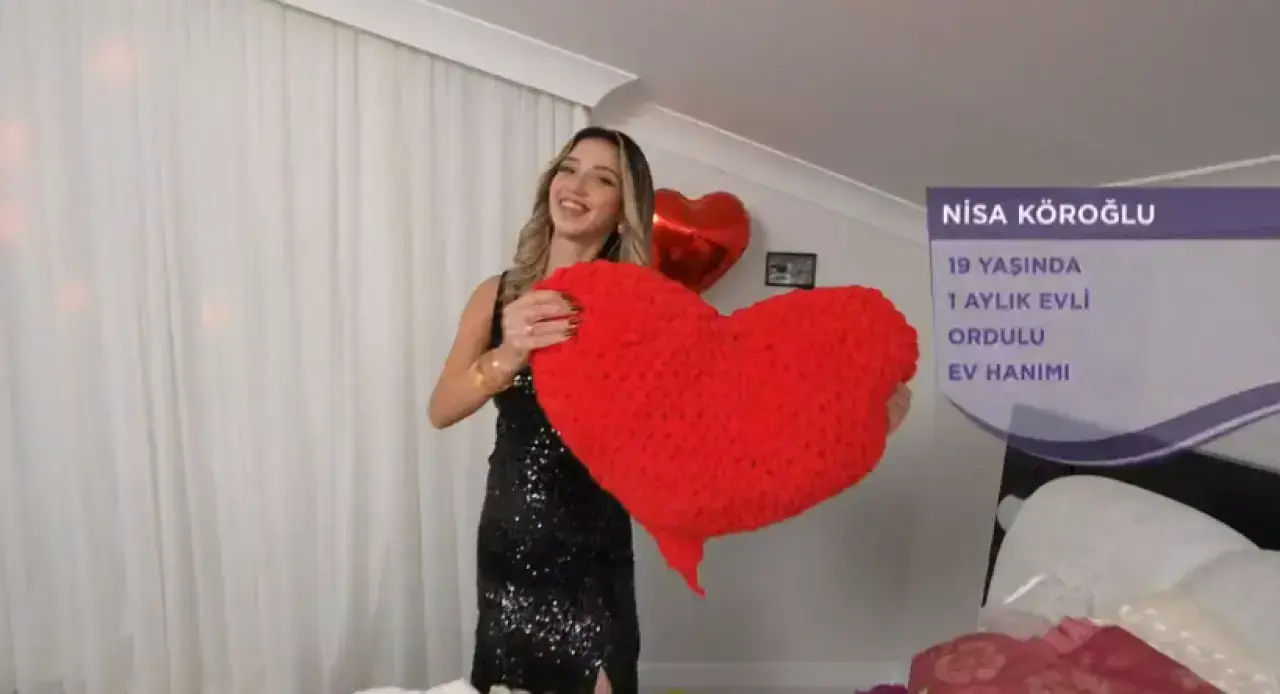 Nisa Köroğlu, 19 yaşında ve 1 ay evli bir ev hanımı olarak yarışmaya katılan bir diğer aday.