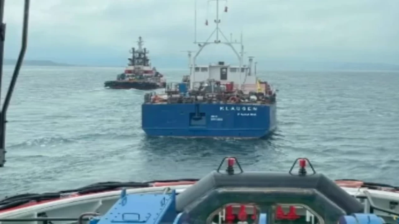 Römorkörler refaketinde 82 metre boyunda 'Klausen' adlı arızalı kargo gemisi Karanlık Liman'a demirletildi.