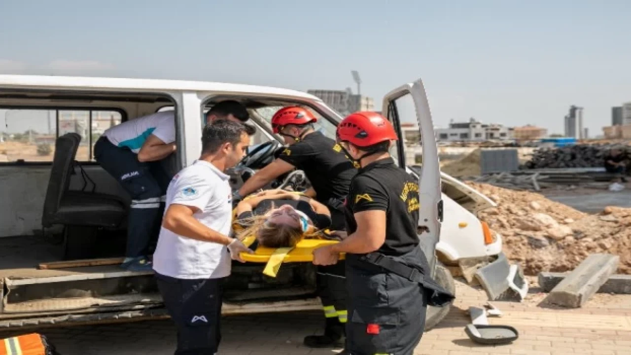 Tatbikattaki senaryoda; 20. Cadde ve 17. Cadde kesişiminde genel bakım ve onarım çalışmalarının yapıldığı esnada yol trafik güvenliği önlemlerini almış olan trafik sinyalizasyon ekip aracını son anda fark eden seyir halindeki aracın, direksiyon hâkimiyetini kaybedip kazaya karışması ve kaza sonrasında Büyükşehir Belediyesi’nin ilgili birimlerinin koordineli bir şekilde çalışmaları canlandırıldı.