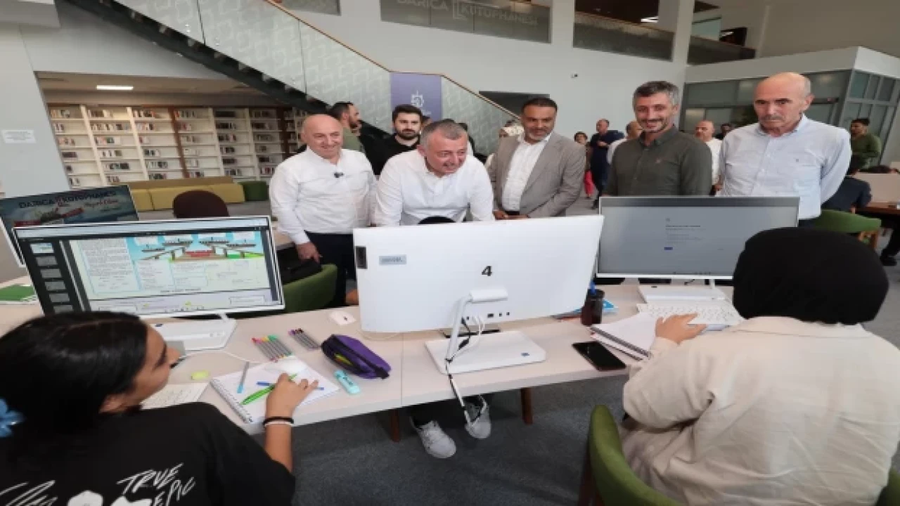 Darıca’da 900 dönümlük bu araziyi halkımızın kullanımına sunduklarını aktaran Başkan Büyükakın, “Burası askeri kışlaydı. Önce devrini aldık, ondan sonra etap etap hizmete açmaya başladık. Bugün gerek burada, gerek ilimizin diğer ilçelerinde sayısız Millet Bahçesi var. Kütüphanemiz deniz manzaralı kütüphane. İçeride çocuklarımız kütüphanede eğitimlerini alıyor. 900 dönümlük bu araziyi halkımızın kullanımına açtık. Burada milletimiz var, kamusal alanlar var” ifadesini kullandı.