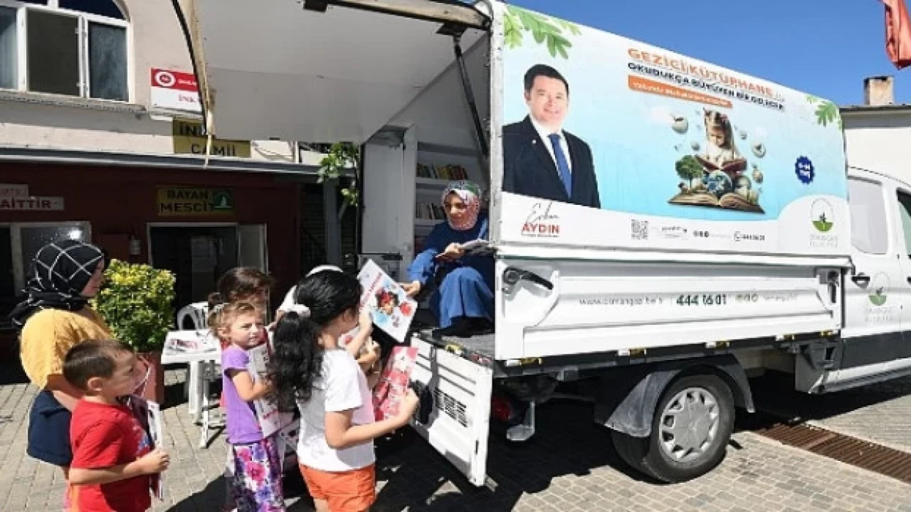 Konuşmaların ardından Gezici Kütüphane’nin içerisine giren Başkan Aydın, kütüphanenin raflarından seçtiği kitabı, törene katılan bir çocuğa verdi.