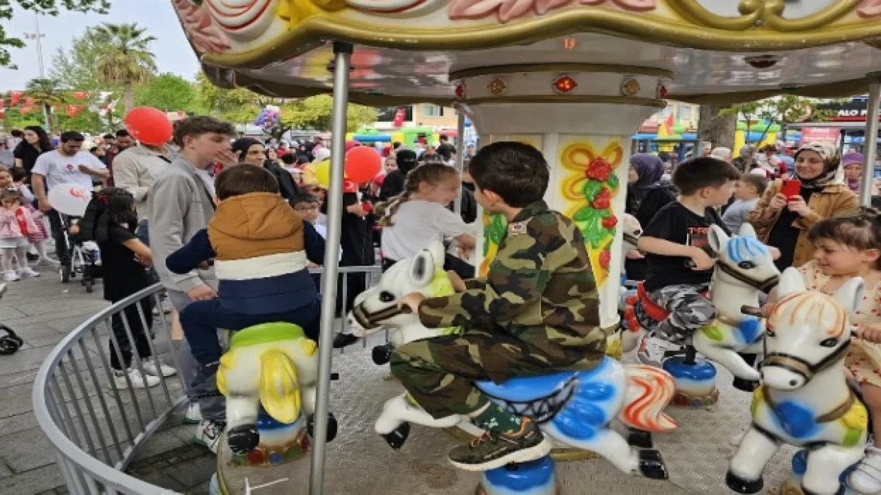 KOCAELİ (İGFA) - Gölcük’te çocuklar 23 Nisan Ulusal Egemenlik ve Çocuk Bayramı’nda oyun ve eğlence dolu bir gün yaşadılar. Gölcük Belediyesi tarafından Anıtpark’ta oluşturulan etkinlik alanında çocuklara özel sahne oyunları, TRT Çocuk Müzikal Tiyatro Z Takımı, mini tiyatro, şişme çocuk oyun parkı ve çeşitli etkinlikler, 23 Nisan coşkusunu ikiye katladı. Çocuklar; aileleriyle birlikte geldikleri etkinlik alanında, gönüllerince oyunlar oynayarak kendi bayramlarını eğlenceye doyarak yaşadılar. Alana gelen Gölcük Belediye Başkanı Ali Yıldırım Sezer, bol bol hatıra fotoğrafı çektirdiği çocukların eğlencelerine ortak oldu.