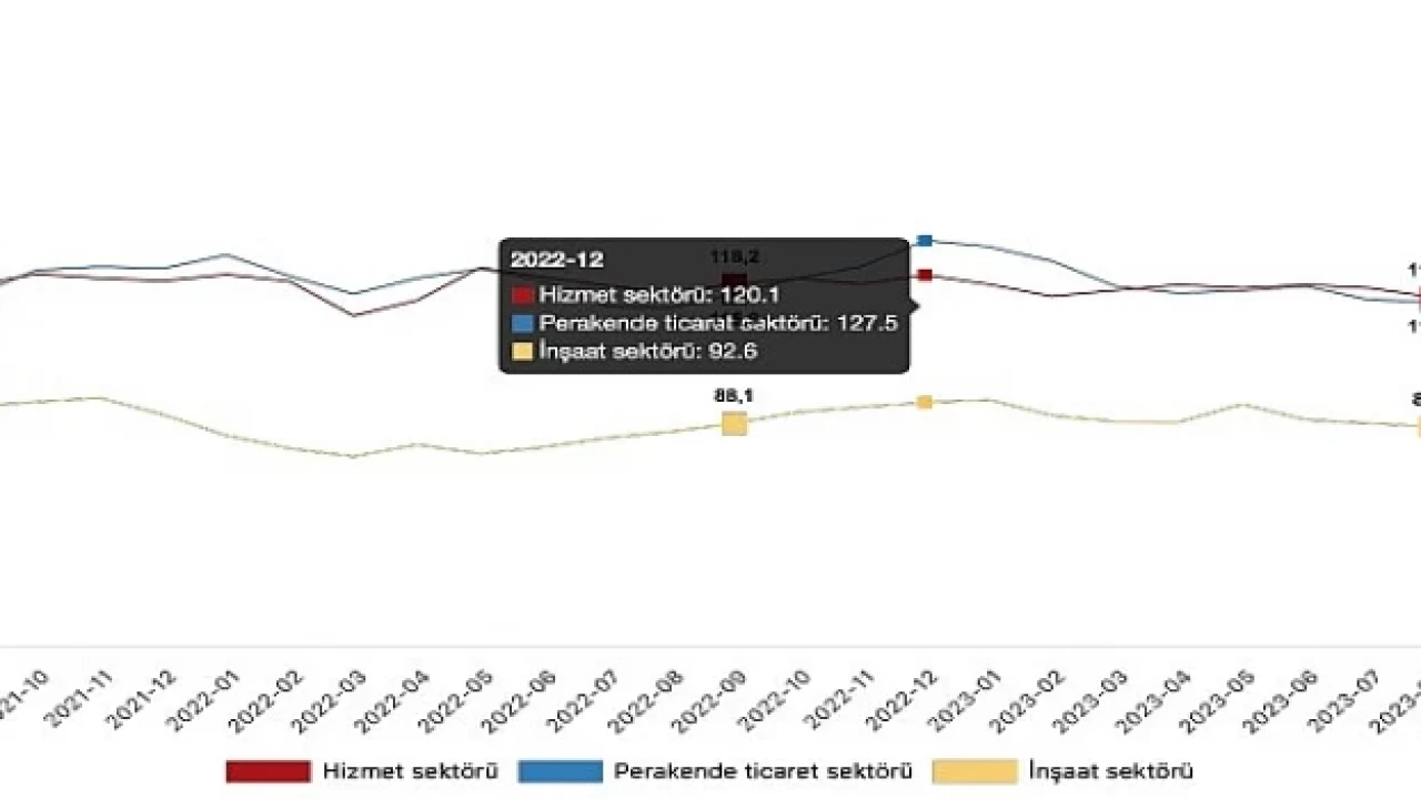 Güven endeksi hizmet sektöründe yüzde 2,0 azaldı, perakende ticaret sektöründe yüzde 3,0 arttı, inşaat sektöründe yüzde 1,0 arttı