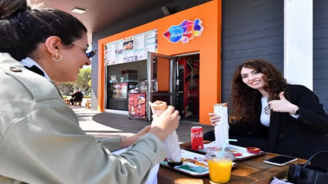 MERSİN (İGFA) - Kır Kahvesi adıyla uzun zamandır hizmet veren Büyükşehir’in kafesi, Hatay’ın sevilen lezzeti Antakya dönerin sunulduğu ve yakın zamanda Hatay’ın farklı lezzetlerinin de sunulacağı yeni bir konsepte kavuştu. ‘Hatay’dan’ ismiyle hizmet veren kafede, yaşanan depremde Hatay’daki iş yerini ve evini kaybetmiş bir döner ustası da istihdam edildi.
