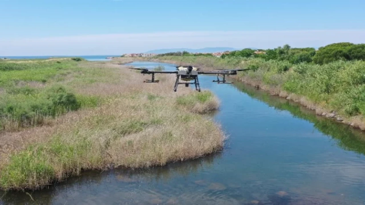 DÜNYA SAĞLIK ÖRGÜTÜ ONAYLI İLAÇ Ekipler; droneye yükledikleri suda çözülebilen Dünya Sağlık Örgütü’nün onayladığı Sağlık Bakanlığının ruhsatlandırdığı biyosidal ilaçları, insan ve araç ile erişilemeyen sivrisinek üreme kaynaklarına havadan bırakıyor. Bu kapsamda; sazlık alanlar, bataklıklar, büyük su birikintileri ve kanallar ilaçlanıyor. Çevreye herhangi bir zararı olmayan ilaçlar, suda çözüldüğünde geniş bir alanda sivrisinek larvalarını yok ediyor. Bu sayede vatandaşların rahat bir yaz mevsimi geçirmeleri hedefleniyor. Çevre Koruma ve Kontrol Dairesi Başkanlığı tarafından ilaçlama çalışmalarına yaz boyunca aralıksız olarak devam edilecek.