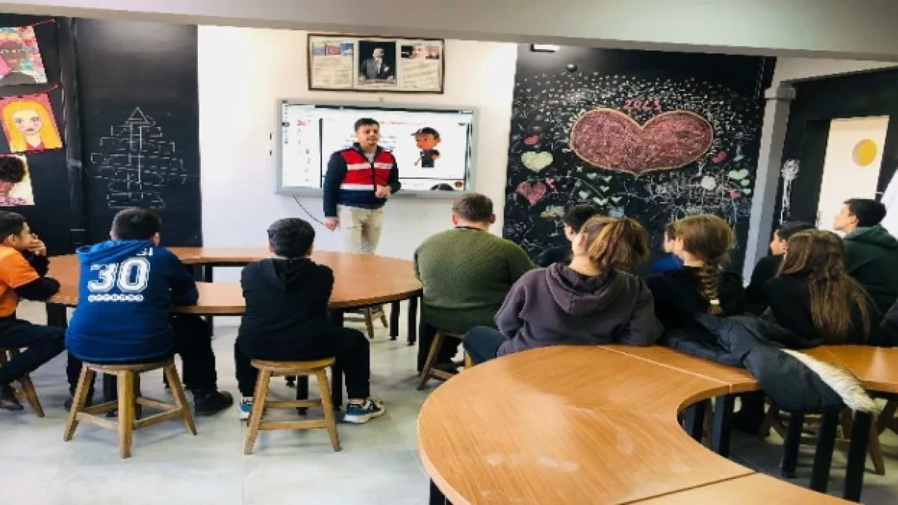 Eğitimde, dijital bağımlılık, siber zorbalık, güvenli internet kullanımı, siber dolandırıcılıktan korunma ve sosyal medya kullanımında dikkat edilecek hususlar hakkında bilgiler verildi.