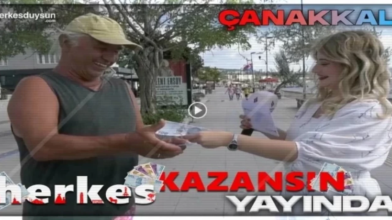 ÇANAKKALE (İGFA) - “Türkiye’nin yenilikçi medyası” sloganıyla yola çıkan herkesduysun.com bünyesinde hazırlanan Herkes Kazansın isimli para ödüllü bilgi yarışmasının bu haftaki durağı Çanakkale oldu. Genel kültür soruları ile vatandaşın karşısına çıkan Herkes Duysun ekibi, bu hafta Çanakkalelilere kazandırdı.
