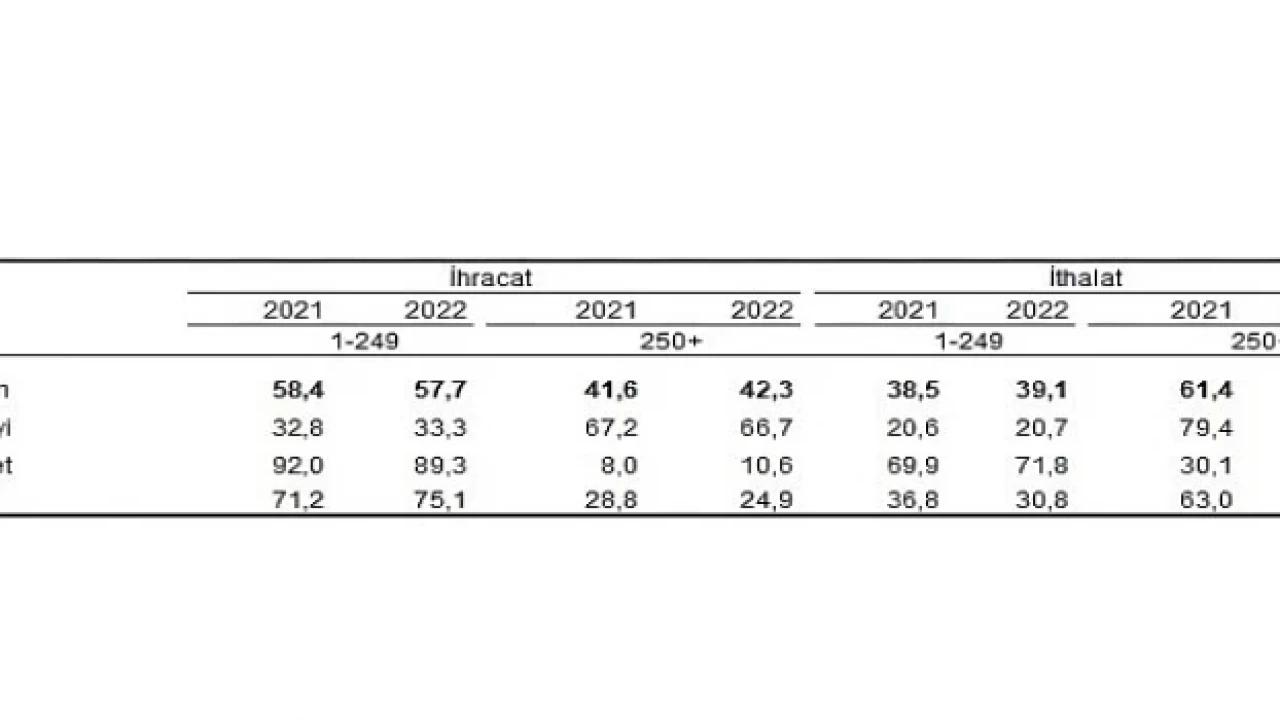 Dış ticaret verileri ile iş kayıtları sisteminde yer alan girişimlerin ana faaliyet türü ve çalışan sayısı bilgileri eşleştirilerek, dış ticaret yapan girişimlerin özellikleri elde edilmektedir. Dış ticaret istatistikleri ve iş kayıtları sistemi kullanılarak elde edilen verilere göre, 2022 yılında 114 bin 155 girişim ihracat, 173 bin 302 girişim ithalat yaptı. Yapılan eşleştirmede, ihracat ve ithalat yapan girişimlerin yaklaşık %100,0'ının bilgilerine ulaşılmıştır. Bu girişimler toplam ihracatın ve ithalatın yaklaşık %100,0'ını gerçekleştirmiştir. İthalattaki girişim sayısındaki artış, Basitleştirilmiş Gümrük Beyannamesi sistemindeki girişim sayısı artışından kaynaklanmaktadır.