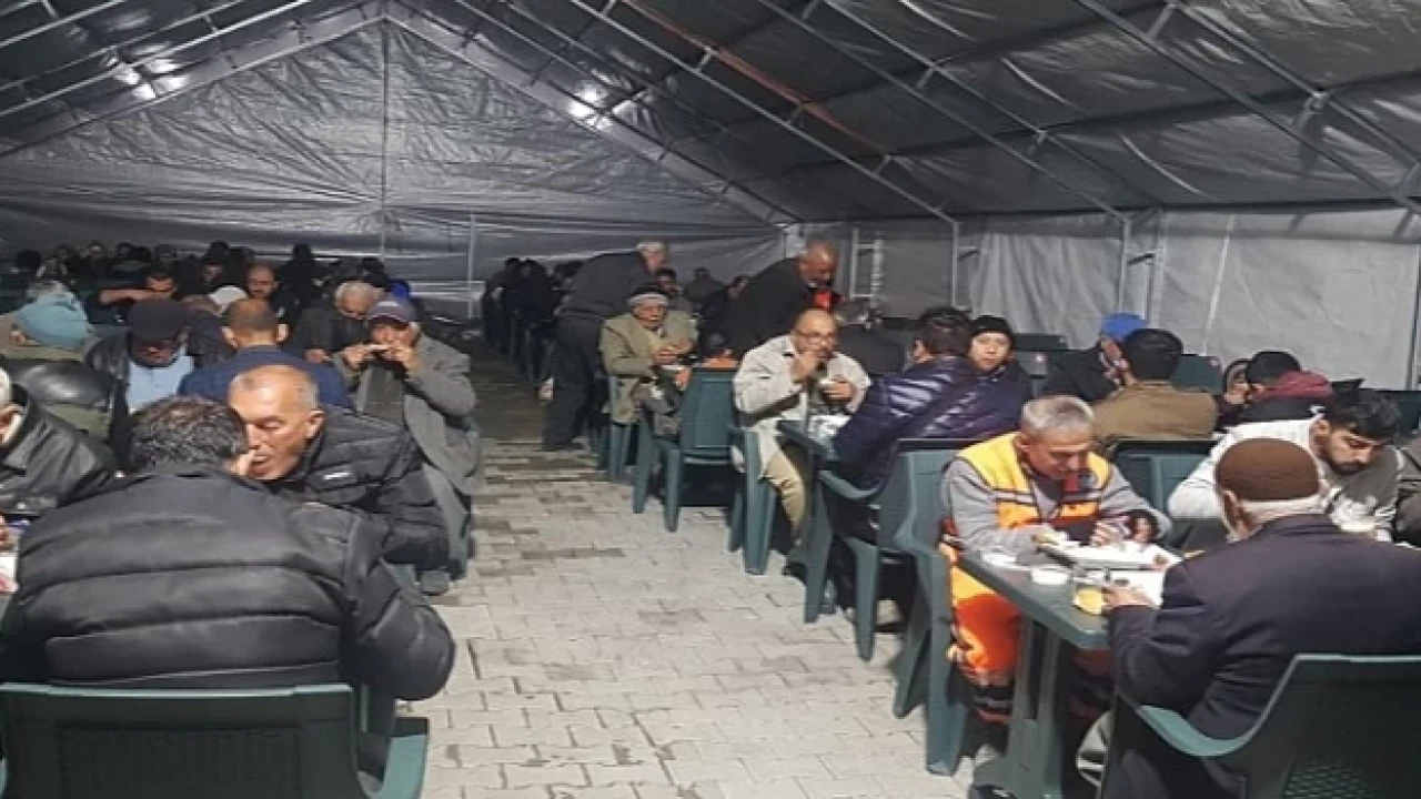 Bölgede bulunan depremzede ve görevli personele hizmet veren iftar çadırında sıcak yemek, içecek ve tatlı ikram edildi.