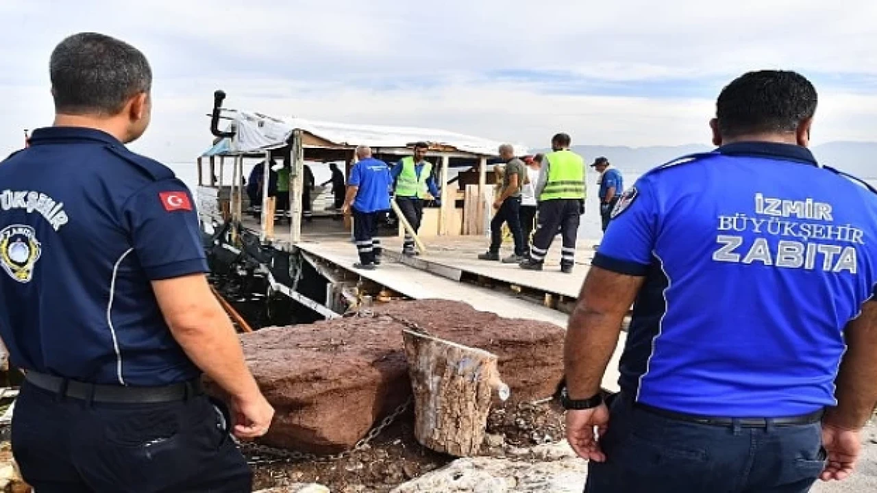 İzmir Emniyet Müdürlüğü ekiplerinin de destek verdiği çalışmada, kepçeler yapıları yıkarak denizden çıkardı. Toplanan atıklar belediye tarafından imha edilecek.
