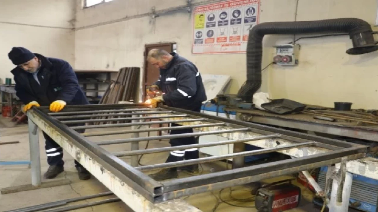 KOCAELİ (İGFA) - İzmit Belediyesi atölyeleri, depremzedeler için kurulacak olan yaşam alanında kullanılmak üzere öz kaynakları ile üretime devam ediyor.