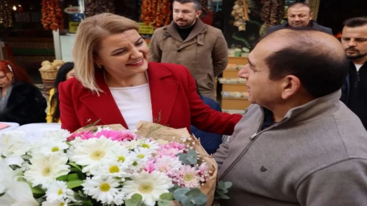 Cadde esnafı da başkan Hürriyet’e teşekkür ederek çiçek takdiminde bulundu.