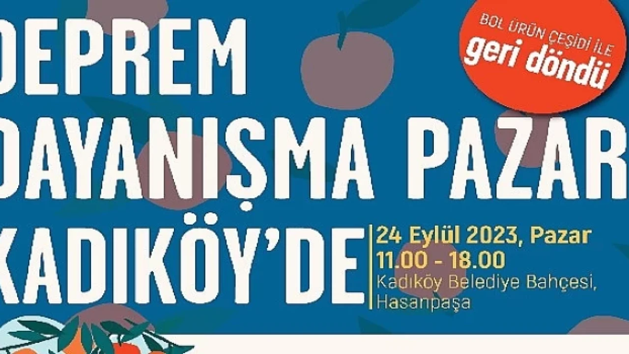 Kadıköy Belediyesi Deprem Dayanışma Pazarı, 24 Eylül Pazar günü Kadıköy Belediyesi’nin bahçesinde kurulacak ve saat 11.00 - 18.00 saatleri arasında açık olacak.