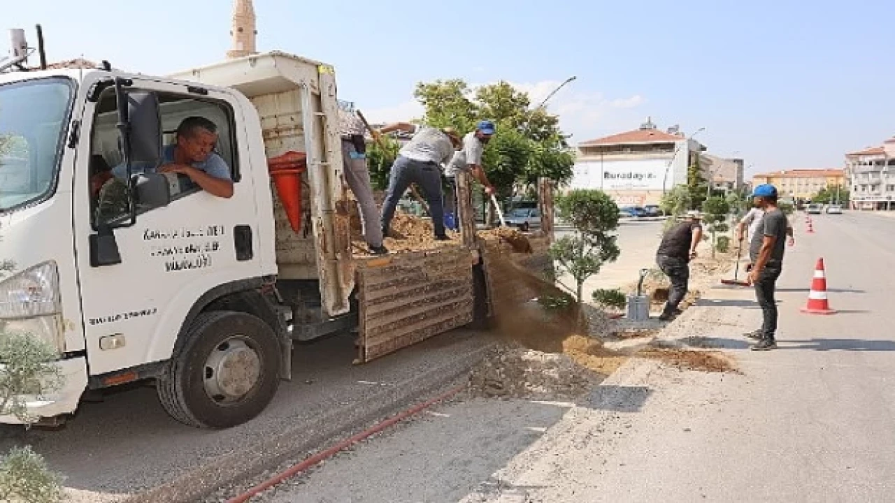 Kentin her köşesini birbirinden güzel mevsimlik çiçekler ve bitkilerle süslemeye devam eden belediye ekipleri, bu kez de Zeytin Dalı Bulvarı'nda orta refüj için kazılan alana mavi servi ve leylandi türü ağaçlar dikiyor. Orta refüjde peyzaj düzenlemesi tamamlandıktan sonra çeşitli renklerde güller de bulvarı süsleyecek.