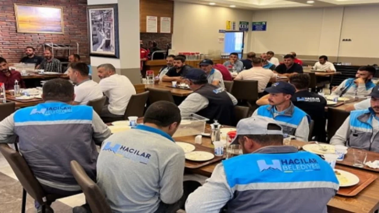 Mehmet UZEL (KAYSERİ İGFA) Kayseri Hacılar Belediye Başkanı Bilal Özdoğan kurban bayramı vesilesiyle mesai yapan ve bayramda vatandaşın sorun yaşamaması için çalışmalar yapan personeli ile yemekte bir araya geldi. Başkan Özdoğan burada yaptığı konuşmada emekleri için tüm çalışan personele teşekkür etti.