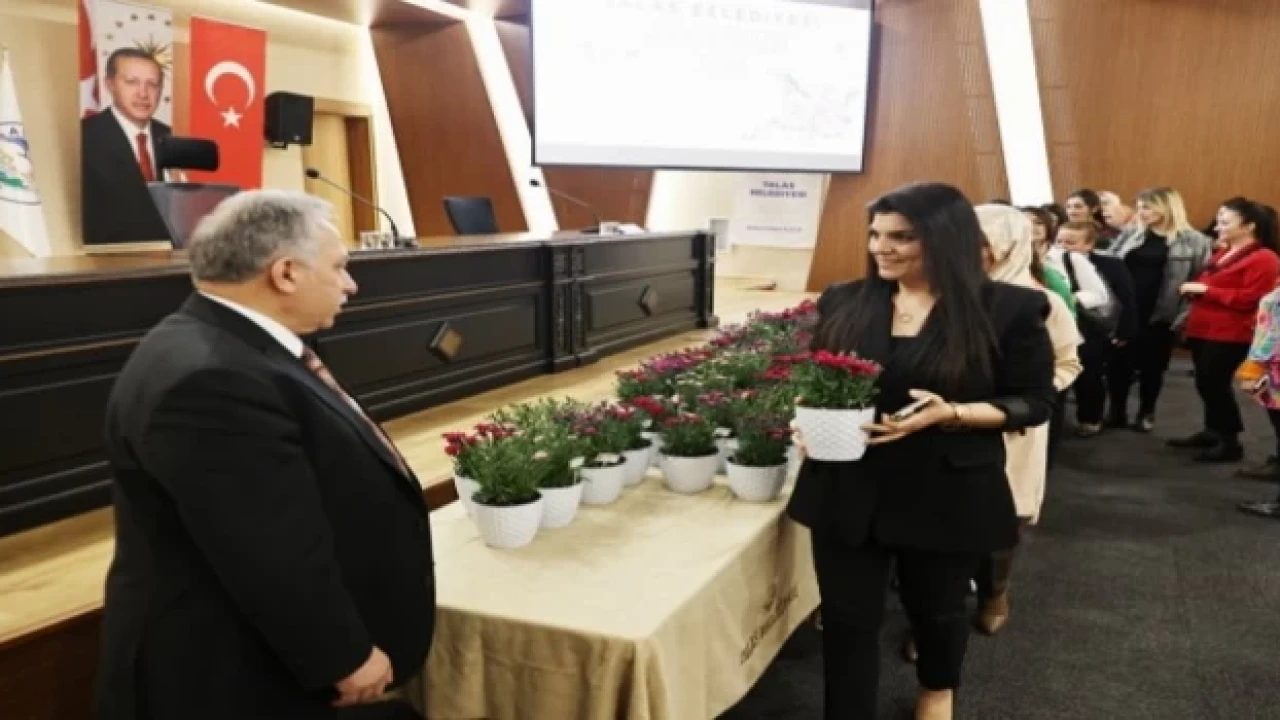 Kayseri Talas Belediye Başkanı Mustafa Yalçın, Anneler Günü münasebetiyle belediyede görev yapan kadın personellere çiçek vererek günlerini kutladı.