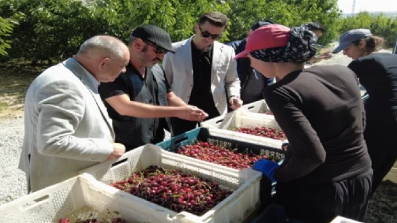 Kayseri'nin Yahyalı Kaymakamı Mehmet Kaya ve Yahyalı Belediye Başkanı Esat Öztürk ilçede başlayan kiraz hasatına katıldılar.