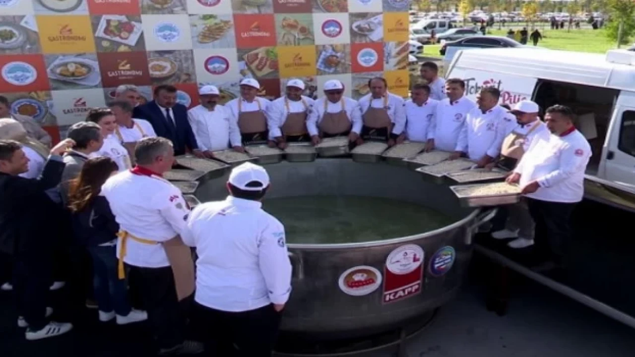 İlk olarak, Kayseri Üniversitesi Rektörü Prof. Dr. Kurtuluş Karamustafa ile Lokantacılar ve Pastacılar Odası Başkanı Altan Aydemir, aşçılarla birlikte küçük küçük katlanarak hazırlanan mantılar sıcak suyun kaynadığı dev kazana atıldı.