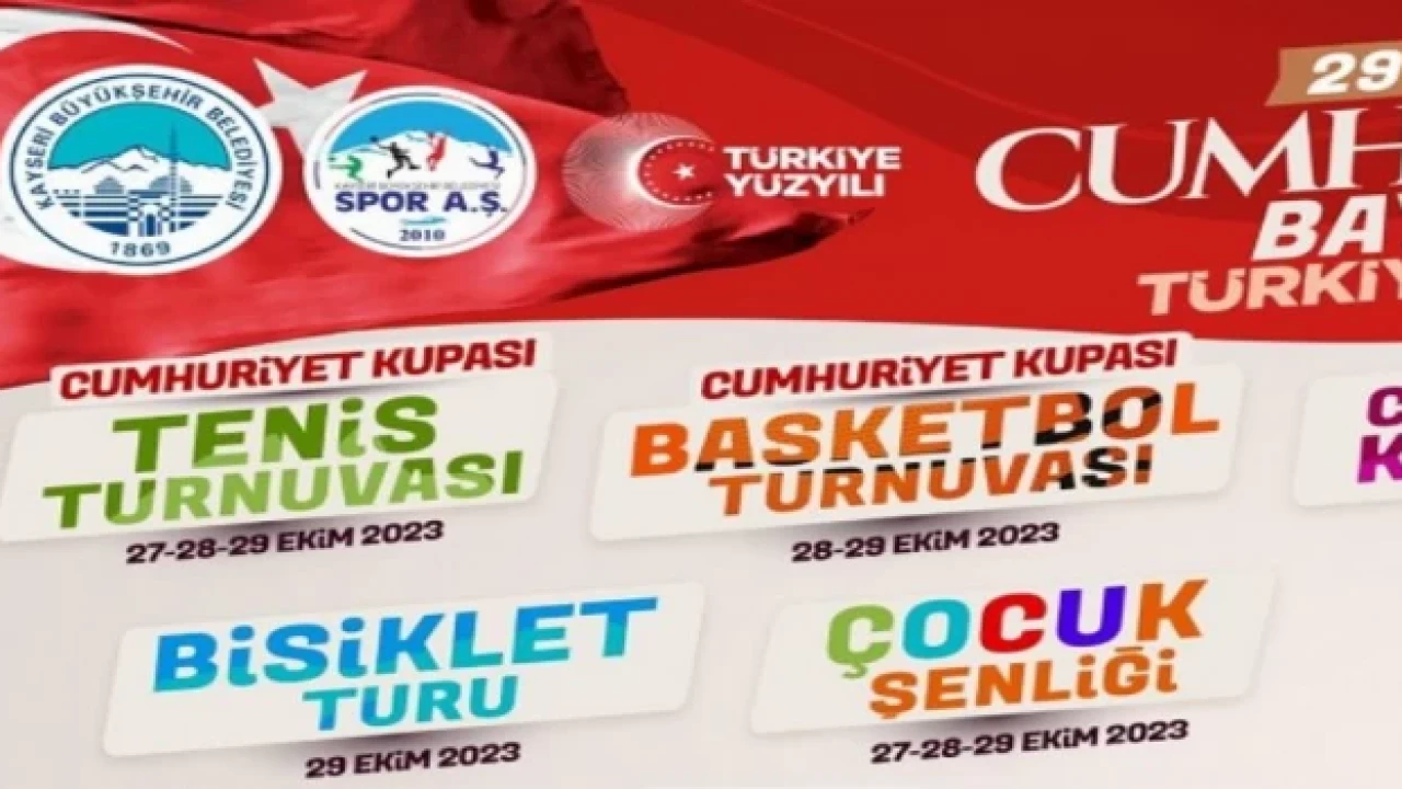 Kayseri Büyükşehir Belediyesi, Türkiye Cumhuriyeti’nin 100’üncü kuruluş yıl dönümünü tenis turnuvası, 3x3 Basketbol Turnuvası, Cumhuriyet Koşusu, Bisiklet Turu ve Çocuk Şenliği ile kutluyor.