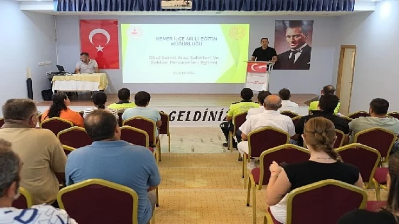 Kemer İlçe Milli Eğitim Müdürlüğü’nde gerçekleştirilen eğitim programına, Kemer Belediye Başkan Yardımcısı Mehmet Derya Baytekin, İlçe Milli Eğitim Şube Müdürü Yalçın Seyran, şoförler ve rehber personelleri katıldı.