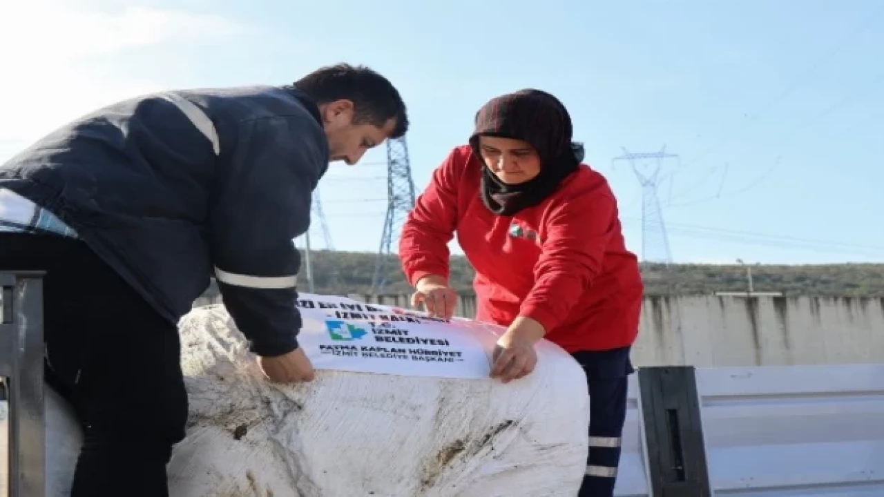 Kocaeli İzmit Belediyesi, depremin merkez üstü Kahramanmaraş’a üç tır dolusu büyükbaş ve küçükbaş hayvan yemi olarak kullanılan silaj ve probiyotik yem katkısı maddesi gönderdi
