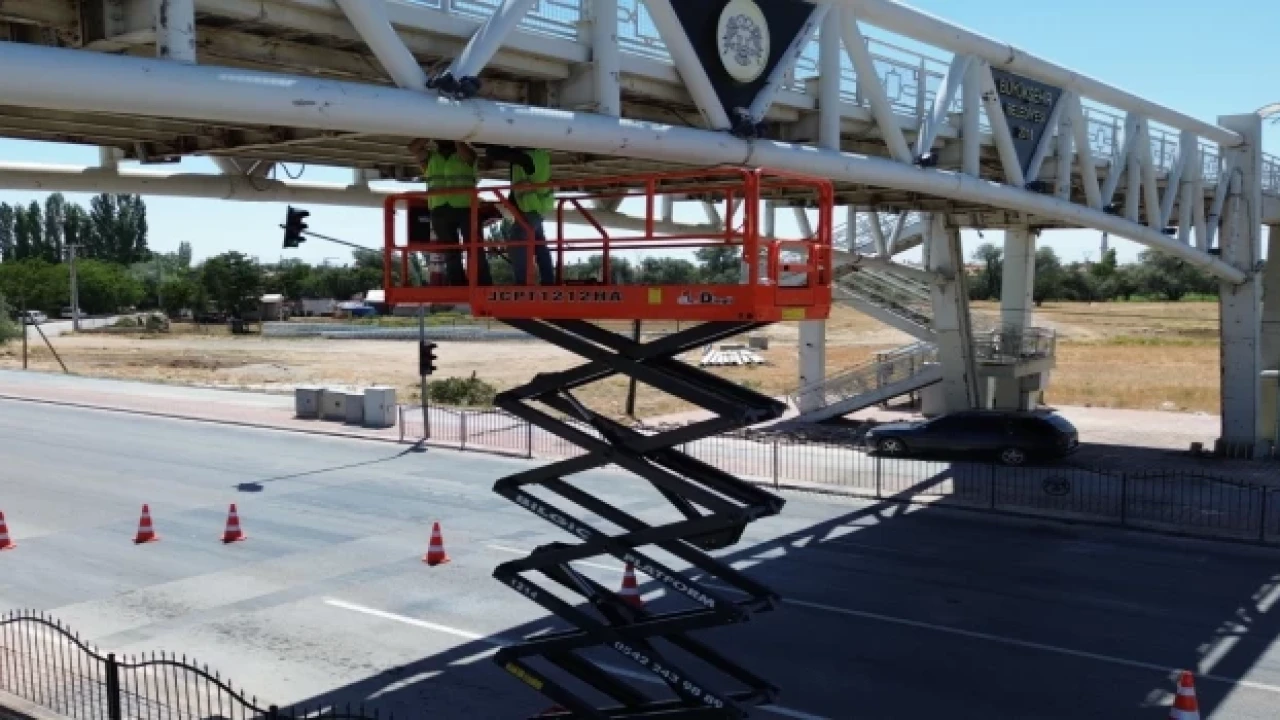 Konya Büyükşehir Belediyesi, hem şehir trafiğinin rahatlaması hem de yaya ve araç güvenliği için inşa ettiği yaya üst geçitleri ve taşıt köprülü kavşaklarında periyodik olarak iyileştirme çalışmaları gerçekleştiriyor.