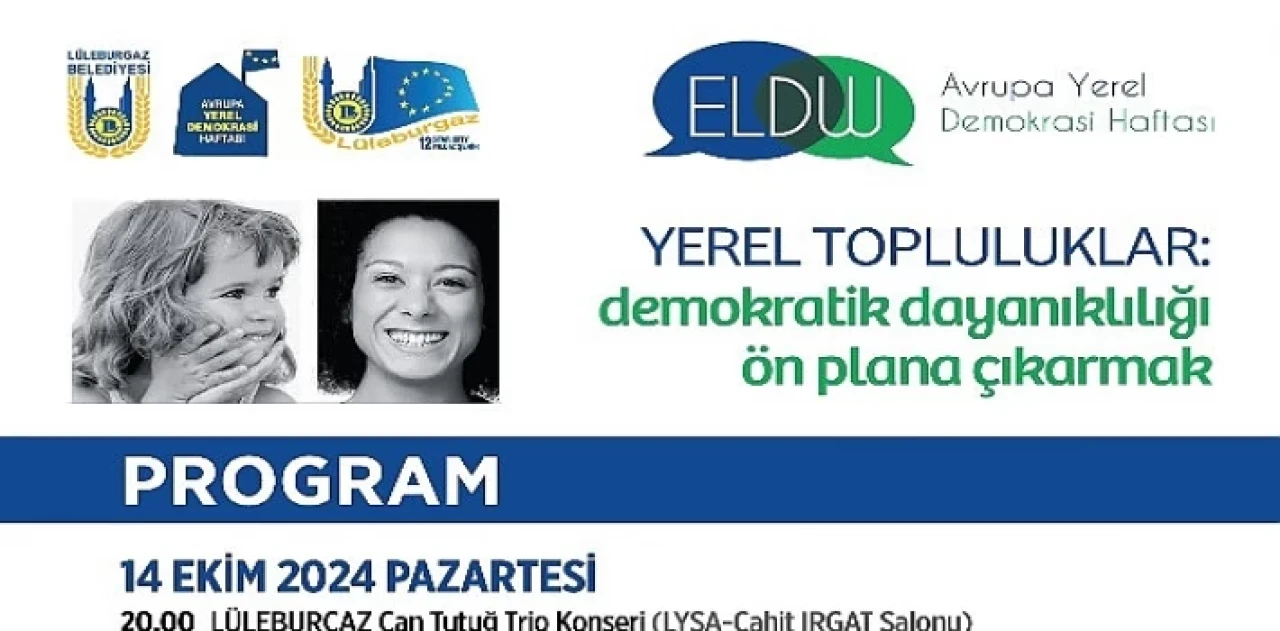Bu yılın temasının "Demokratik dayanıklılığı ön plana çıkarmak" olan Avrupa Yerel Demokrasi Haftası etkinlikleri 14 Ekim’de saat 20:00’da Can Tutuğ Trio- LüleburCaz konseri ile başlayacak.