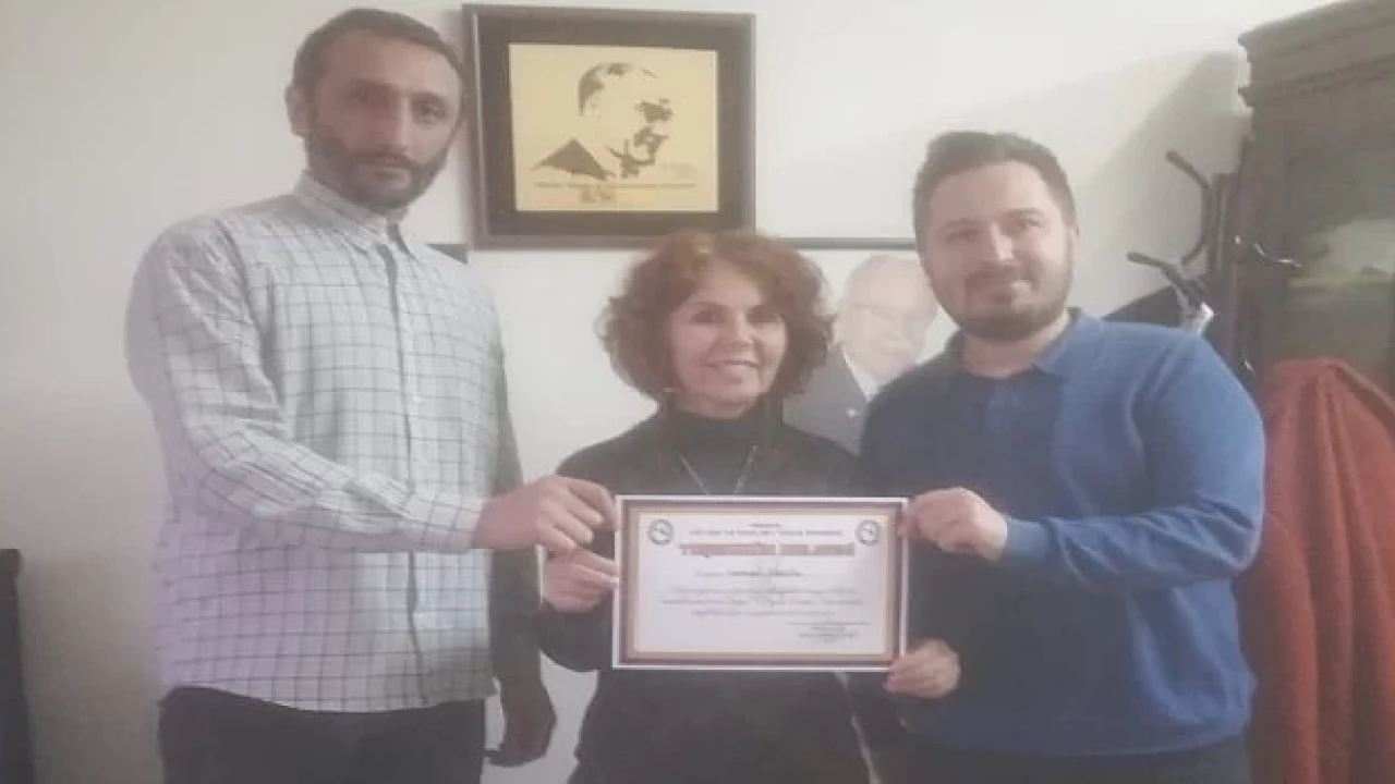 Başkan Bahar Ayşegül Gülcü daha sonrasında Mahmut Görgen ve Hakan Ergün’e ziyaretleri sebebiyle Teşekkür Belgelerini takdim etti.
