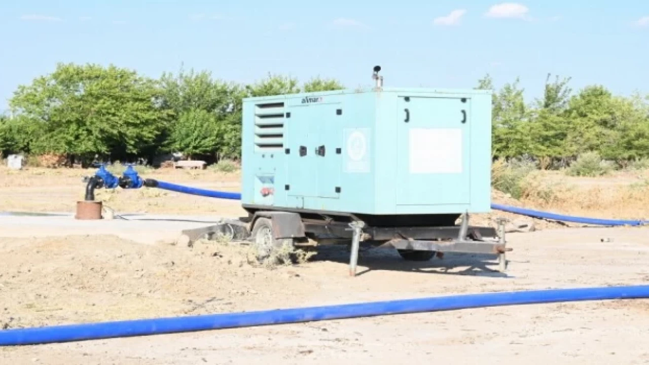 Açılan yeni sondajlardan 1 tanesinin bağlantısı yapıldı. Enerji nakil hattı döşeme çalışmasının devam ettiği sondaj jeneratörle çalıştırılarak depoya su veriliyor.