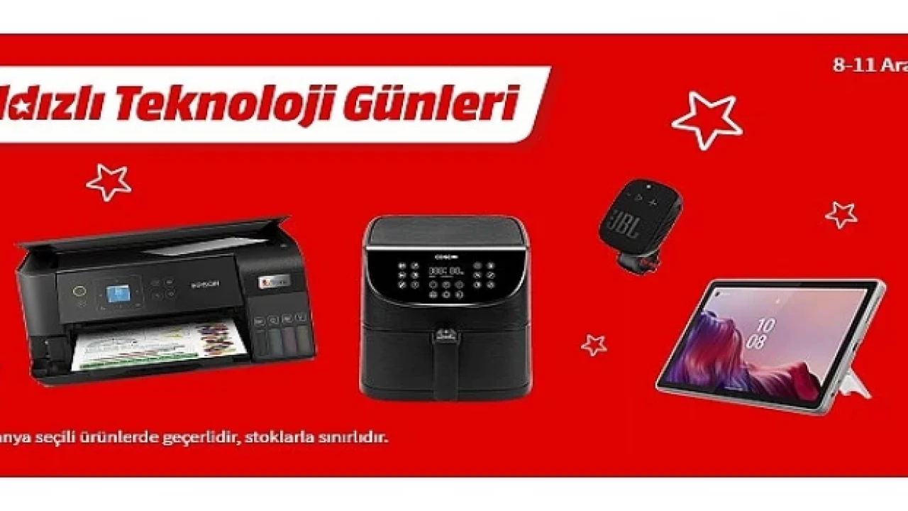 Geniş ürün yelpazesiyle teknolojiseverlere konforlu alışverişin keyfini sunan MediaMarkt, tüketicileri farklı kampanyalarla buluşturmaya devam ediyor. 11 Aralık tarihine kadar devam edecek Yıldızlı Teknoloji Günleri kampanyası kapsamında, dizüstü bilgisayardan tam otomatik kahve makinesine, oyuncu kulaklığından tablet ve yazıcıya kadar birçok ürün kampanyaya özel fırsatlarla satışa sunulacak.