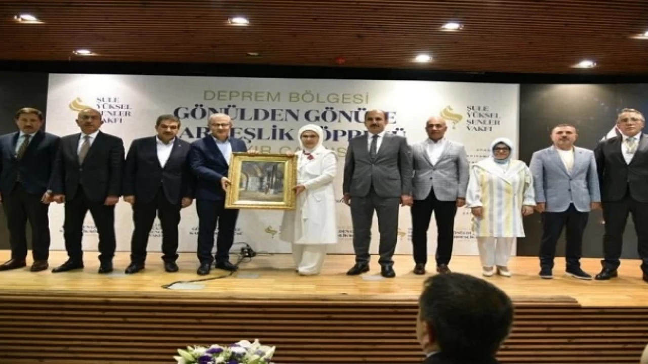 Programda konuşan Emine Erdoğan, “Kalplerimiz haftalarca; Kahramanmaraş, Adıyaman, Hatay, Gaziantep, Kilis, Şanlıurfa, Diyarbakır, Adana, Osmaniye, Elazığ, Malatya’da attı. Pek çok ülke toprağından daha geniş coğrafyaya yayılan, ender görülen şiddette, dahası üst üste gelen depremler ve seller ile sınandık. Buna rağmen devletimiz, afetlerin başladığı ilk andan itibaren, tüm kurumlarıyla varlığını hissettirdi. Sabahın ilk saatlerinden itibaren; gıda, kıyafet, elektronik cihaz, çadır, konteyner sevkiyatı ve arama kurtarma çalışmaları ivedilikle başlatıldı. Bakanlıklarımız ve bütün kurumlarımız; İş makineleri, gemiler, tırlar, helikopterler ve uçaklar, insansız hava araçlarıyla, seferber oldular. Bugün bizleri buluşturan, Şule Yüksel Şenler Vakfı’nın Hayır Çarşısı etkinliği vesilesiyle, bütün sivil toplum kuruluşlarımıza teşekkür etmek isterim. Gönüllülerimiz, bütün deneyimleriyle, devletimizin ve milletimizin yanında oldular. Sıcak yemek dağıtımından, çadır kentlere varıncaya dek, günlük ihtiyaçların karşılanması için, yoğun emek sarf ettiler. Özellikle kadınlarımız ve çocuklarımız için hazırlanan hijyen kitlerinden 'Harika İşler Çantası'na ve anaokullarına varıncaya dek, akla gelebilecek her ihtiyaç düşünüldü” dedi.