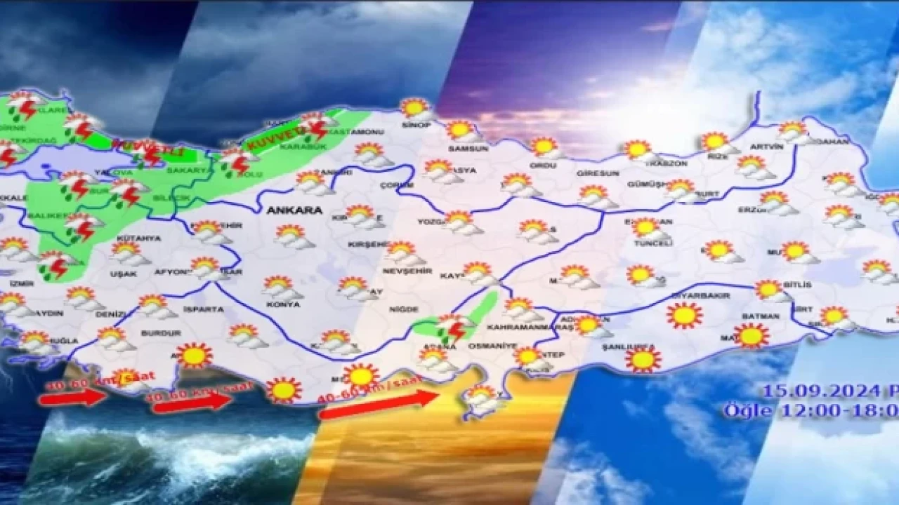 ANKARA (İGFA) - Meteoroloji Genel Müdürlüğü 15 Eylül Pazar gününe ilişkin günlük hava tahmin raporunu yayımladı.