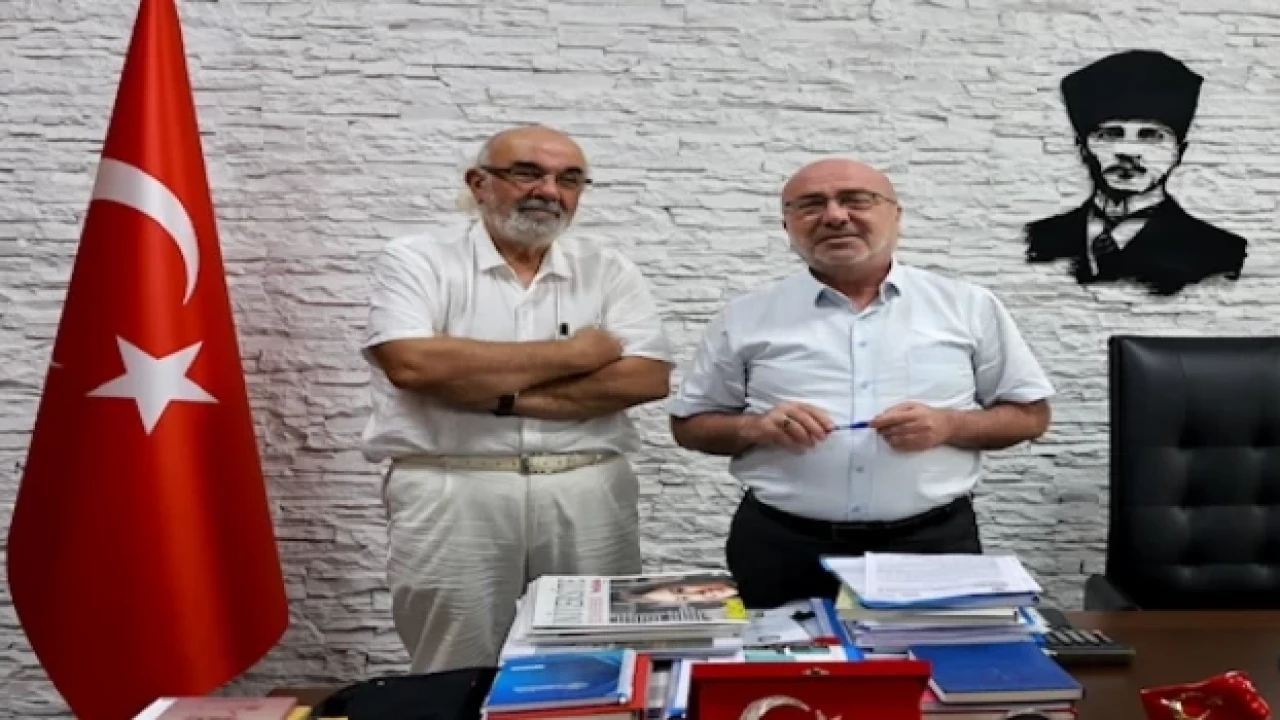 Kayseri Üniversitesi Rektörü Prof.Dr.Kurtuluş Karamustafa, Mehmet Uzel’e Üniversite hakkında bilgi verirken..