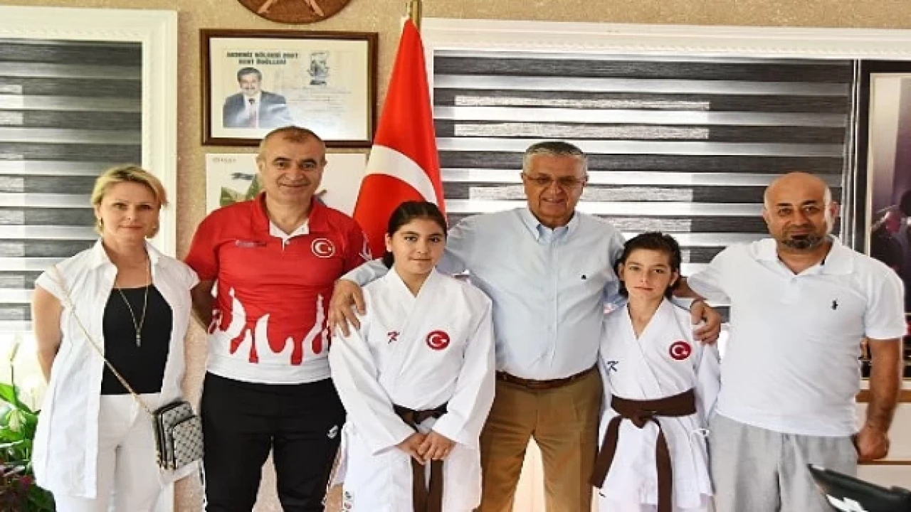 İstanbul Beylikdüzü Spor Salonu’nda bu yıl 28’incisi düzenlenecek olan Balkan Çocuklar Karate Şampiyonası öncesi, Başkan Topaloğlu'nu ziyaret eden Elanur Taylan ve Deniz Arel Şahin'e Kemer Belediyesi Karate Antrenörü Emin Akar eşlik etti.