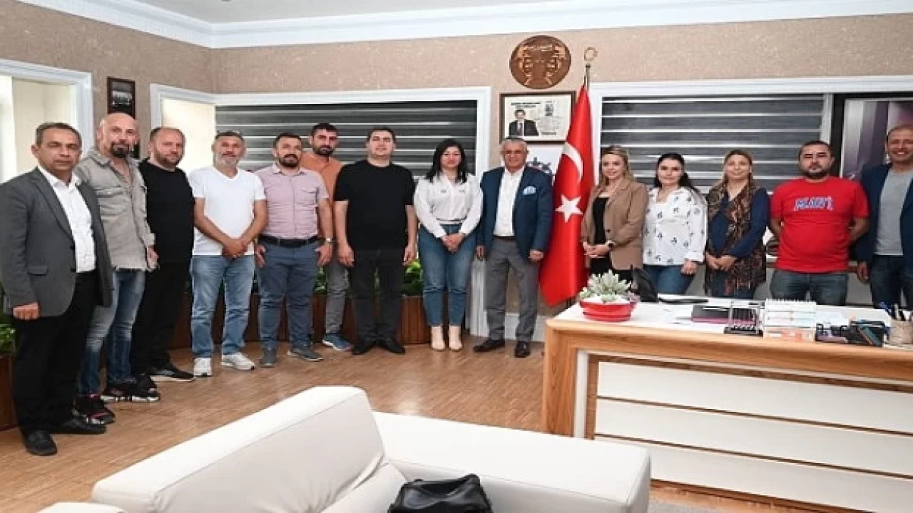 Kemer Belediyesi Futbol Okulu’nda ücretsiz eğitim alan geleceğin futbolcusu çocukların aileleri Kemer Belediye Başkanı Necati Topaloğlu’na makamında nezaket ziyaretinde bulundu.