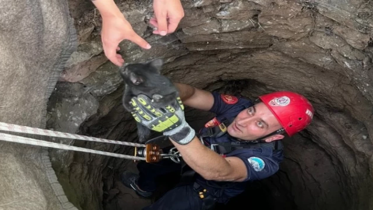 Kuyuda mahsur kalan yavru kedi, itfaiye ekipleri tarafından 1 saatlik çalışma ile kurtarılarak özgürlüğüne kavuşturuldu.