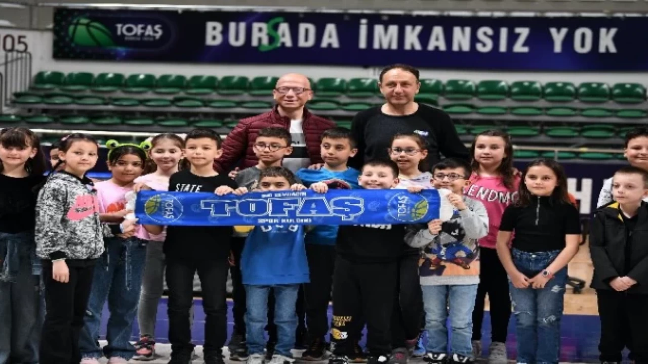 Ligin 28. haftasında Bursa'da sahasında oynayacağı Darüşşafaka Lassa maçı hazırlıklarını sürdüren TOFAŞ Basketbol Takımı’na minik öğrenciler moral verdi.